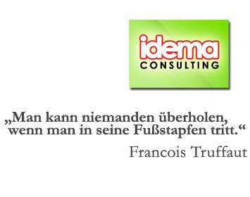 IDEMA Consulting wurde im Jahr 2008 gegründet mit der Zielsetzung innovative Dienstleistungen und Produkte zu konzipieren, zu entwickeln und zu vermarkten. Das Management-Team besteht aus Andrea Loidl, langjährige Spezialisten im Bereich Marketing und Organisation sowie Robert Walder, der auf umfangreiche Erfahrung im Produktmarketing und Vertriebsbereich zurückblicken kann.